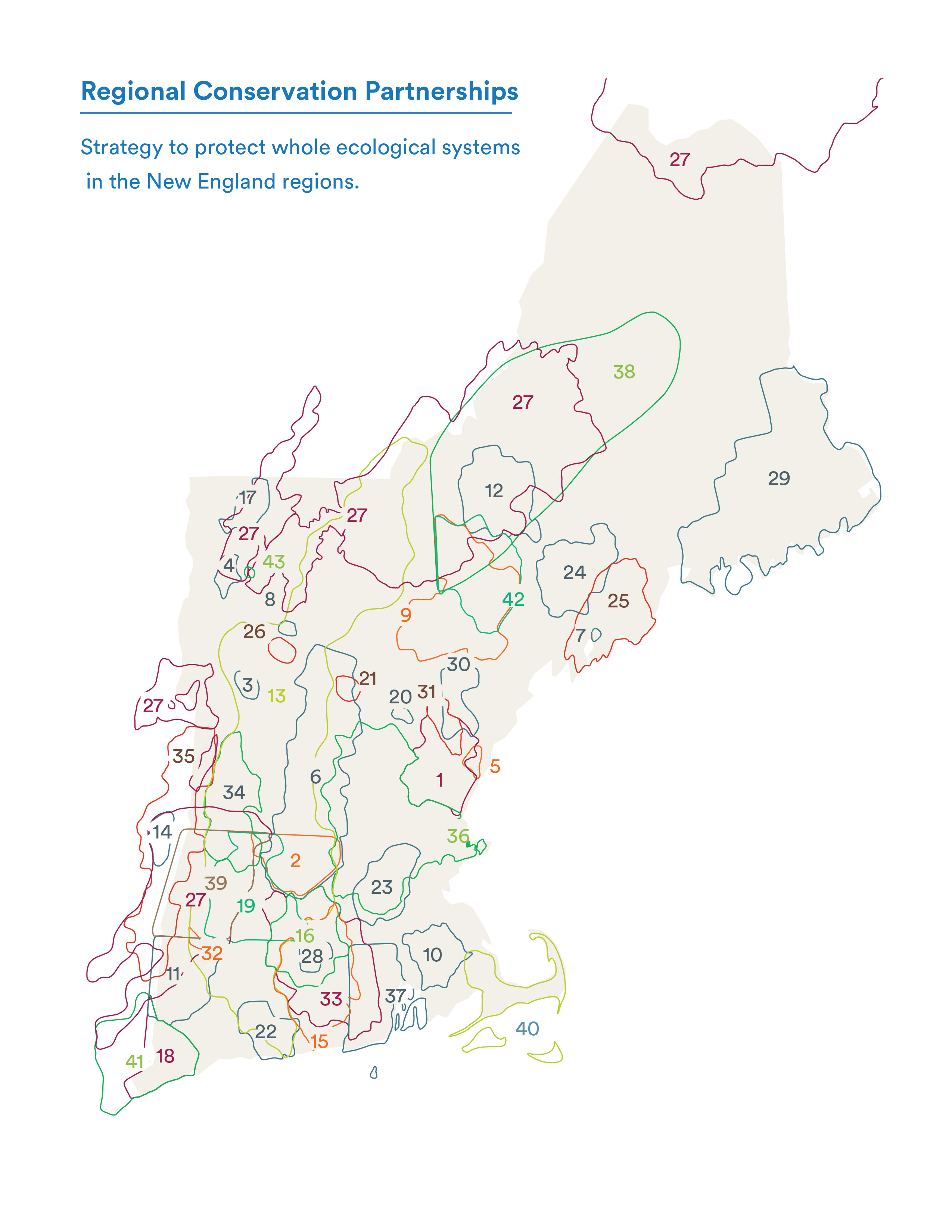 The rapid increase of Regional Conservation Partnerships (RCPs) in New England presented a perfect opportunity to promote the structures and tools of collaborative conservation. RCPs are coalitions of conservation organizations and other interested groups that join together to conserve land and habitat at a larger scale.