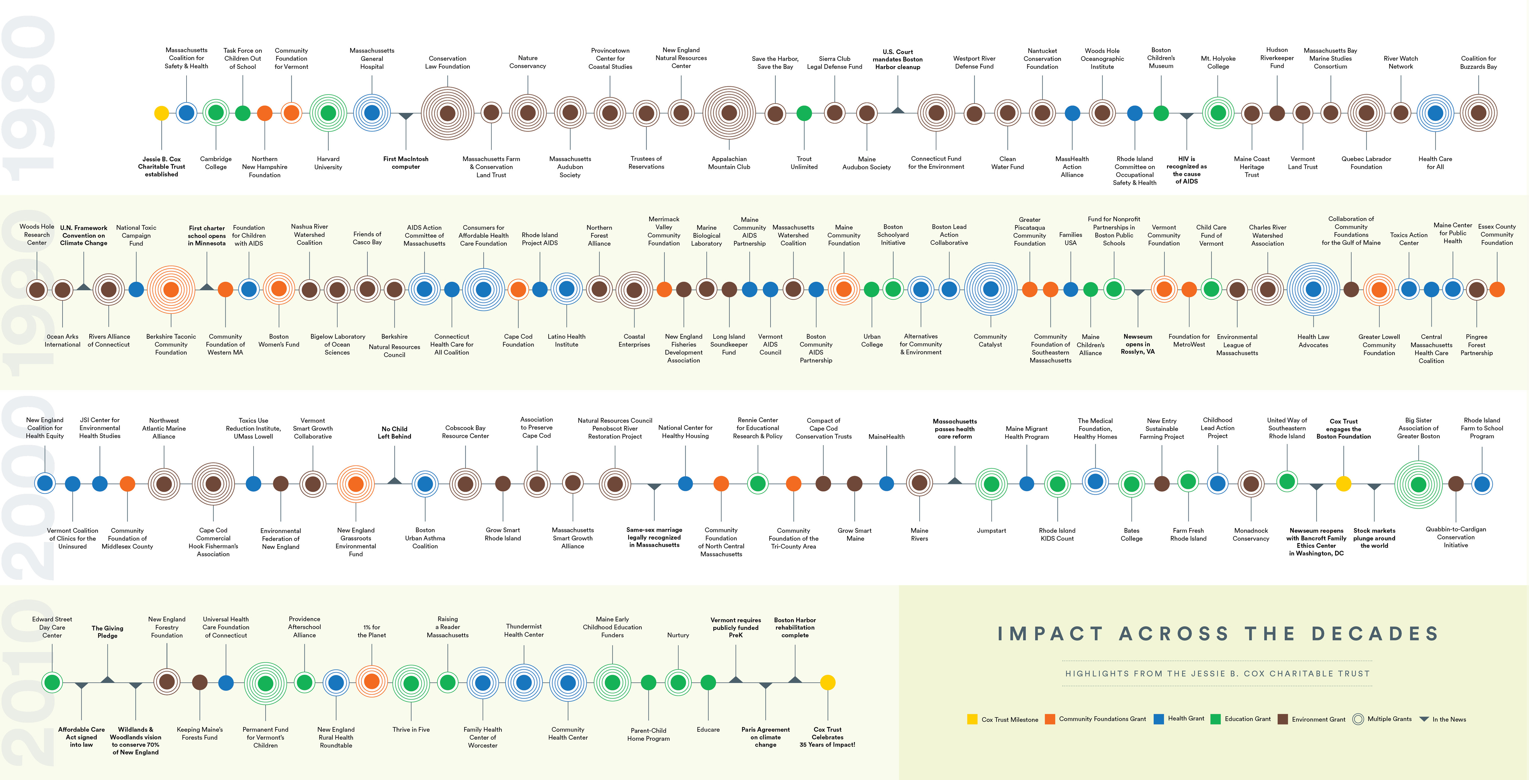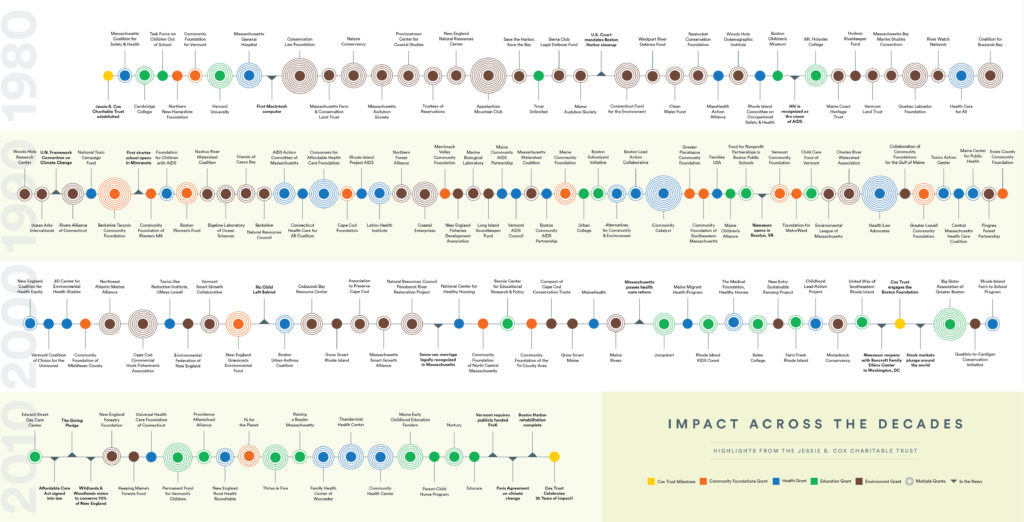 Highlights from The Jessie B. Cox Charitable Trust Fund. Hover over timeline for magnifying glass.